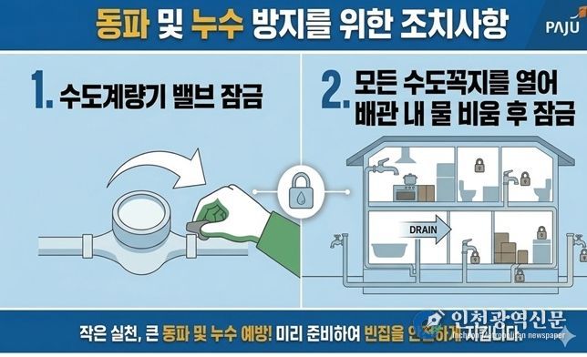 [인천광역신문] 최예준 기자 | 파주시가 겨울철 한파와 여름철 집중호우로 반복되는 빈집(3개월 이상 수도 사용량이 없는 수용가) 수도 누수 문제 해결에 본격적으로 나선다.