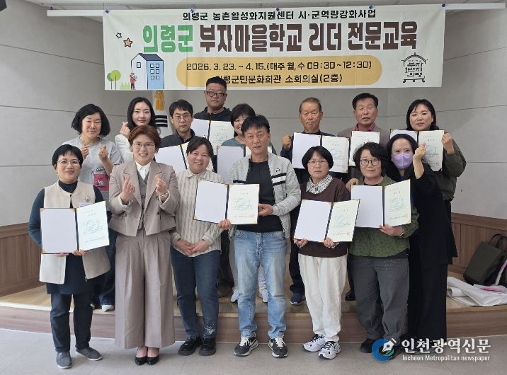 [인천광역신문] 최예준 기자 | 의령군은 지난 3월부터 추진해 온 ‘2026년 부자마을학교 리더 전문교육’을 마무리하고 12명의 수료생을 배출했다고 밝혔다.