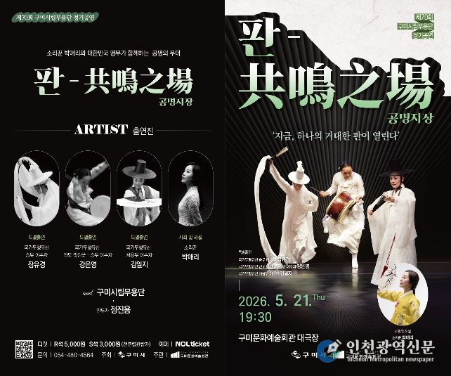 [인천광역신문] 최예준 기자 | 구미시는 5월 21일 오후 7시 30분, 구미시문화예술회관 대공연장에서 ‘제70회 구미시립무용단 정기공연 '판-共鳴之場공명지장'’을 개최한다.