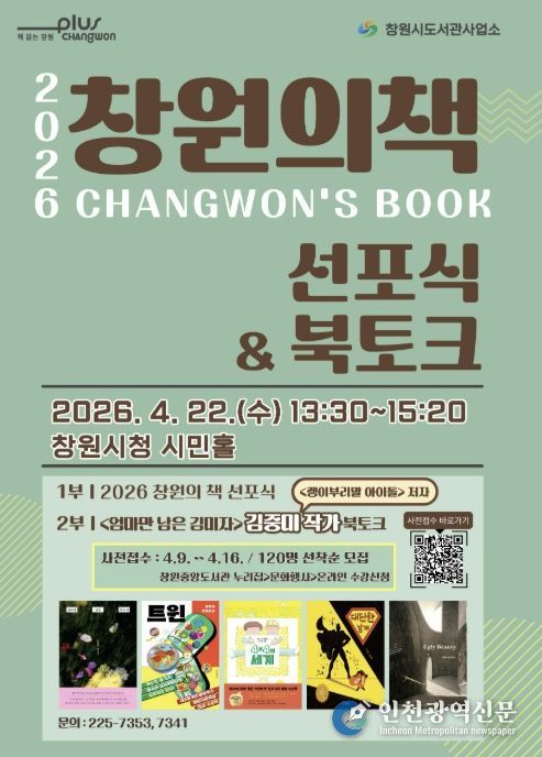 [인천광역신문] 최예준 기자 | 창원특례시 도서관사업소는 오는 4월 22일 오후 1시 30분, 창원시청 시민홀에서 시민들과 함께하는 ‘2026 창원의 책’ 선포식을 개최한다고 밝혔다.