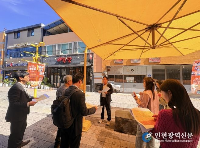 [인천광역신문] 최예준 기자 | 문경시는 점촌원도심상권 점촌역 방향 200여 미터 구간에 ‘닻별 거리’ 조성 속도를 높이고 있다. 노란색 간판과 어닝을 새로 설치하고, 상징 조형물과 조형 벤치 등을 배치하며, 은하수 파고라 70미터 조명으로 거리를 화려하게 꾸민다.