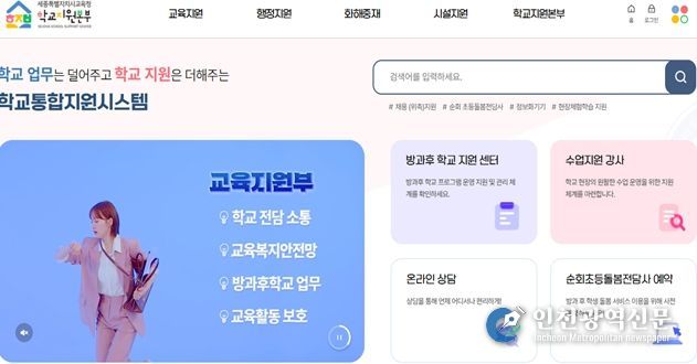 [인천광역신문] 최예준 기자 | 세종특별자치시교육청학교지원본부(본부장 이미자)는 학교 현장의 행정업무를 온라인에서 한 번에 해결할 수 있는 ‘학교통합지원시스템’ 구축을 완료하고 22일부터 본격적인 운영에 들어간다.