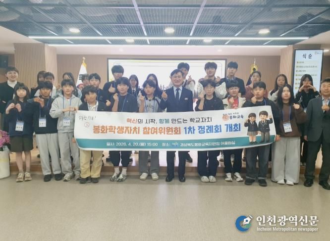 [인천광역신문] 최예준 기자 | 경상북도봉화교육지원청은 2026년 4월20일 봉화교육청 3층 어울림실에서 관내 초·중·고 학생회장 24명이 참석한 가운데 2026 봉화 학생자치참여위원회 1차 정례회를 개최하고, 새로운 위원회를 구성했다.