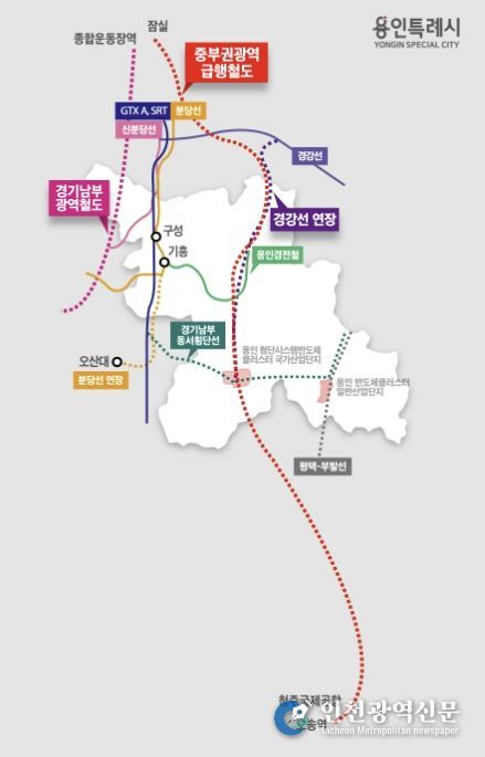 용인시는 또 경기남부광역철도 신설과 관련해 노선을 공유하는 인근 성남시, 화성시와 함께 제5차 국가철도망 구축 계획에 해당 사업의 반영을 요청하는 서명운동을 추진해 왔다.