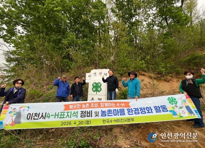 [인천광역신문] 최예준 기자 | 한국4-H이천시본부는 지난 20일 이천시 일원에서 회원 10명이 참여한 가운데 4-H 표지석 정비와 마을 환경정화 활동을 실시했다. 이는 지역 내 4-H 표지석의 체계적인 관리와 쾌적한 마을환경 조성을 위해 추진됐다.