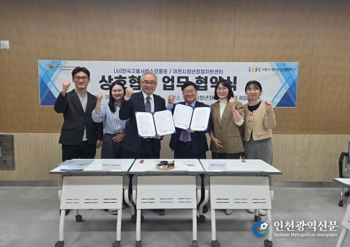 [인천광역신문] 최예준 기자 | 이천시는 청년 취업 및 창업 지원 강화를 위해 사단법인 한국고용서비스진흥원과 이천시 청년창업지원센터가 지난 4월 15일 센터 세미나실에서 업무협약(MOU)을 체결했다고 밝혔다.