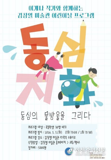 [인천광역신문] 최예준 기자 | 제주도립 김창열미술관이 어린이날을 맞아 5월 5일 초등학교 학생을 대상으로 특별 프로그램 ‘동심지화(童心之畵), 동심의 물방울을 그리다’의 참가자 30명을 모집한다.