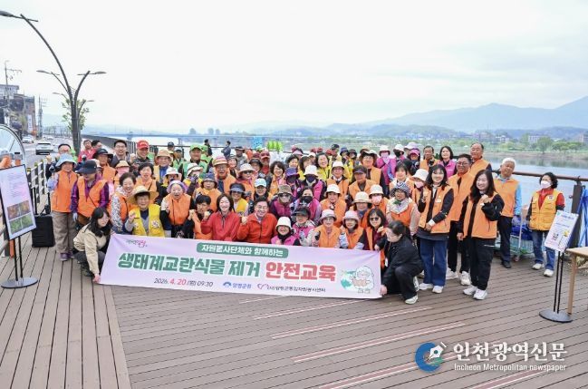 [인천광역신문] 최예준 기자 | 양평군종합자원봉사센터는 지난 20일 오전 9시 양평남한강테라스 하부 산책로 일대에서 ‘2026년 자원봉사 리빙랩 3고 YP(줍고·잇고·지키고) 사업’의 일환으로 생태계 교란 식물 제거 활동을 실시했다.