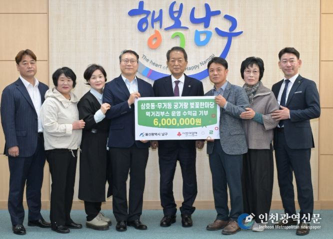 [인천광역신문] 최예준 기자 | 울산 남구는 21일 구청장실에서 삼호·무거동 주민자치위원장 및 단체장들이 참석한 가운데 ‘궁거랑 벚꽃한마당 먹거리부스 운영 수익금’ 전달식을 가졌다.