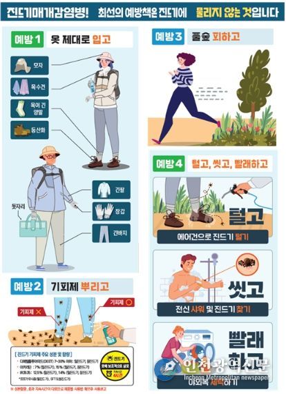 [인천광역신문] 최예준 기자 | 경상남도는 봄철 기온 상승과 야외활동 증가에 따라 중증열성혈소판감소증후군(SFTS), 쯔쯔가무시증 등 진드기 매개 감염병 예방수칙을 철저하게 지킬 것을 당부했다.