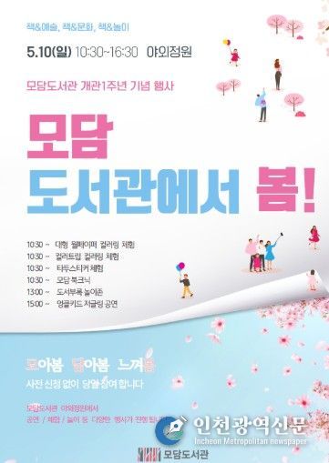 [인천광역신문] 최예준 기자 | 김포 최대 규모 공공도서관인 모담도서관이 개관 1주년을 맞아 오는 5월 10일 ‘책과 문화·예술·놀이’가 어우러지는 행사를 연다. 이번 행사는 시민들에게 감사의 마음을 전하고 복합문화공간으로서의 역할을 수행하고자 마련된 것으로, 사전예약 없이 도서관 방문자 누구나 참여 가능하다.