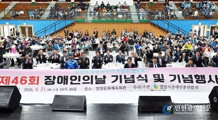 [인천광역신문] 최예준 기자 | 경남 밀양시는 21일 밀양문화체육회관에서 밀양시장애인총연합회(회장 김수현) 주관으로 ‘제46회 장애인의 날’ 기념행사를 개최했다.