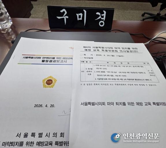[인천광역신문] 최예준 기자 | 서울특별시의회 기획경제위원회 구미경 시의원(국민의힘, 성동구 제2선거구)이 참여한 '서울특별시의회 마약퇴치를 위한 예방교육 특별위원회'가 4월 20일 교육위원회 회의실에서 제4차 회의를 개최하고 주요 안건을 의결했다.