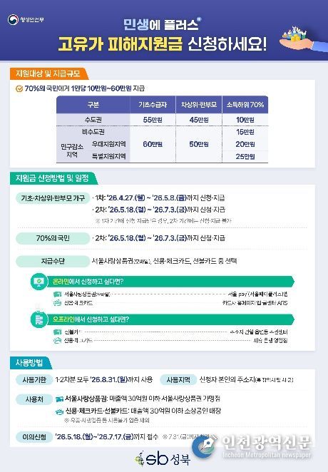[인천광역신문] 최예준 기자 | 서울 성북구가 고유가 피해지원금 신청을 오는 4월 27일부터 접수한다.