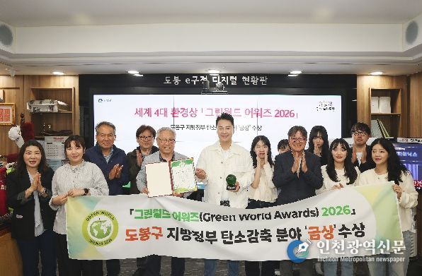[인천광역신문] 최예준 기자 | 서울 도봉구가 지난 4월 13일 영국 웨일스 카디프 성에서 개최된 ‘그린월드 어워즈(Green World Awards) 2026‘에서 지방정부 탄소감축 분야 금상을 수상했다.