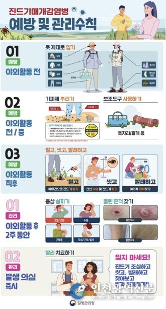 [인천광역신문] 최예준 기자 | 시흥시는 봄철 기온 상승으로 참진드기 활동이 본격화하면서 중증열성혈소판감소증후군(SFTS) 등 진드기 매개 감염병 예방을 위해 시민들의 각별한 주의를 당부했다.