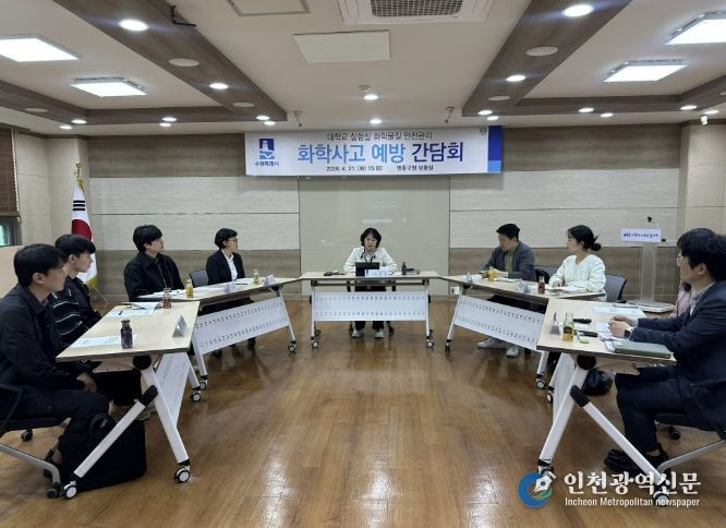 [인천광역신문] 최예준 기자 | 수원특례시는 21일 영통구청 상황실에서 관내 대학교 안전관리자들과 ‘연구실험실 화학사고 예방 간담회’를 열고, 사고 예방·대응 방안을 논의했다.