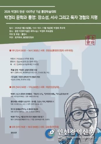 [인천광역신문] 최예준 기자 | 통영시는 한국 문학의 거목 박경리 선생 탄생 100주년을 맞아 오는 5월 4일 오후 1시 박경리기념관 세미나실에서 통영문인협회와 토지학회가 공동 주관하는 ‘2026 박경리 탄생 100주년 기념 통영학술대회’를 개최한다.