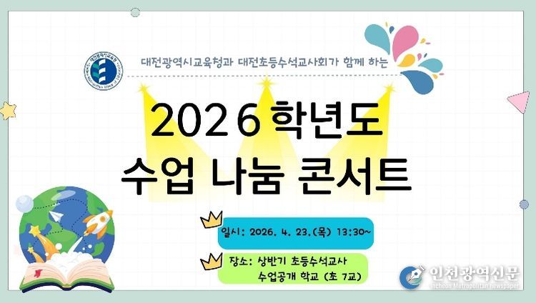 [인천광역신문] 최예준 기자 | 대전시교육청은 2026학년도 초등 수석교사와 함께하는 상반기 수업 나눔 콘서트를 4월 23일 운영한다고 밝혔다.