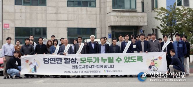 [인천광역신문] 최예준 기자 | 의왕도시공사가 4월 20일, 제46회 장애인의 날을 맞아 장애에 대한 올바른 이해와 사회적 공감대 형성을 위한 장애인 인식 개선 캠페인을 추진했다.