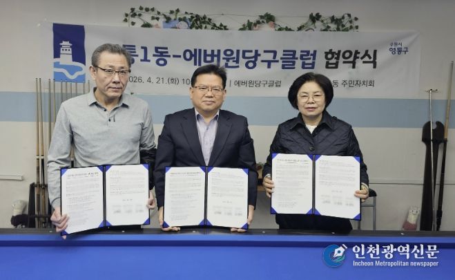[인천광역신문] 최예준 기자 | 수원시 영통구 영통1동 행정복지센터와 영통1동 주민자치회는 지난 21일, 주민자치센터 프로그램의 다양성과 전문성을 강화하기 위해 관내 민간체육시설인 에버원당구클럽과 업무협약을 체결했다.