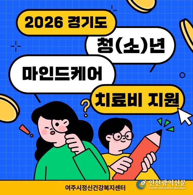 [인천광역신문] 최예준 기자 | 여주시정신건강복지센터는 2026년도 '청(소)년 마인드케어 정신건강 외래치료비 지원사업'을 본격 시행한다고 밝혔다.