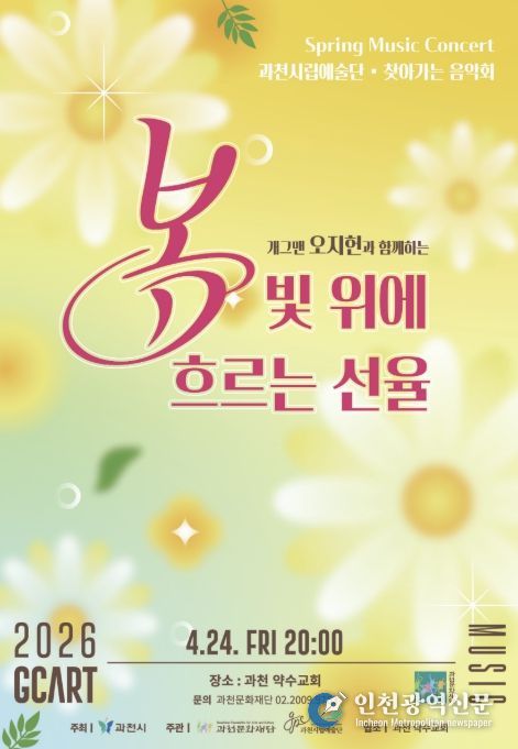 [인천광역신문] 최예준 기자 | 과천시는 오는 24일 오후 8시, 과천 약수교회에서 시민들을 위한 특별한 문화 공연 ‘봄빛 위에 흐르는 선율’을 개최한다.