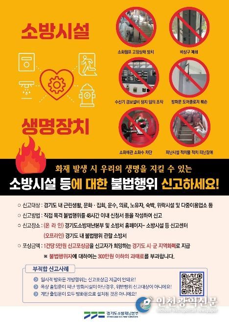 [인천광역신문] 최예준 기자 | 남양주소방서는 22일, 화재 발생 시 인명과 재산 피해를 최소화하기 위해 ‘소방시설 등 불법행위 신고포상제’ 홍보에 나선다고 밝혔다.