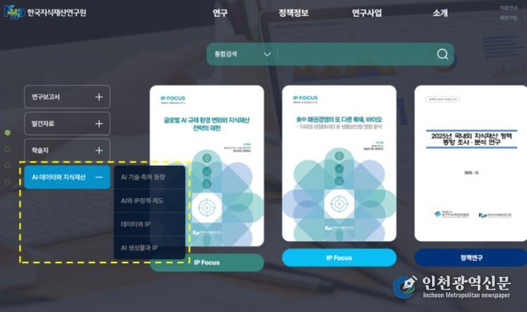 [인천광역신문] 최예준 기자 | 지식재산처는 4월 22일 인공지능(AI)과 데이터 분야의 국내외 지식재산 연구정보를 한눈에 볼 수 있는 통합 정보 사이트인 ‘인공지능(AI)·데이터와 지식재산’ 웹페이지를 새로 개설했다고 밝혔다.