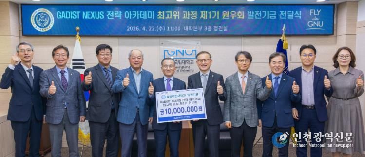 [인천광역신문] 최예준 기자 | 경상국립대학교는 4월 22일 오전 11시 대학본부 3층 접견실에서 ‘GADIST NEXUS 전략 아카데미 최고위 과정’ 제1기 원우회의 대학발전기금 전달식을 개최했다.