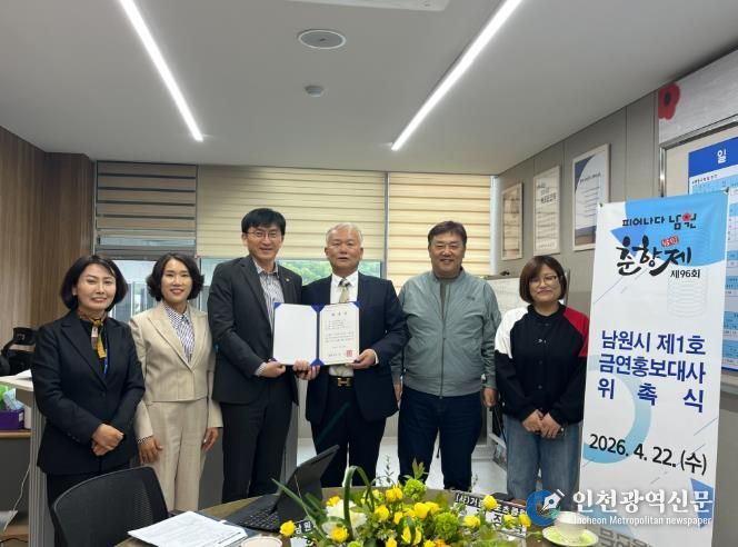 [인천광역신문] 최예준 기자 | 남원시보건소는 4월 22일 ‘제1호 금연 홍보대사 위촉식’을 개최하고, 남원거점스포츠클럽 진장석 회장을 공식 홍보대사로 위촉했다.