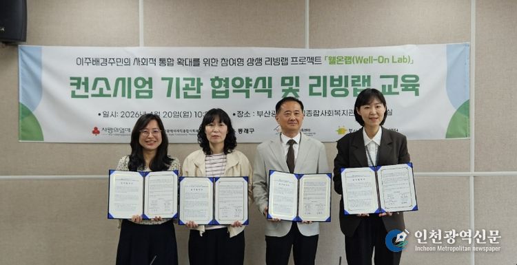 [인천광역신문] 최예준 기자 | 부산 동래구는 사직종합사회복지관(관장 황승호)이 지난 20일 이주배경주민의 사회적 통합 확대를 위한 소셜리빙랩 프로젝트 ‘웰온랩(Well-on Lab)’의 성공적인 추진을 위해 동래구청 및 유관 기관과 업무협약을 체결했다고 밝혔다.