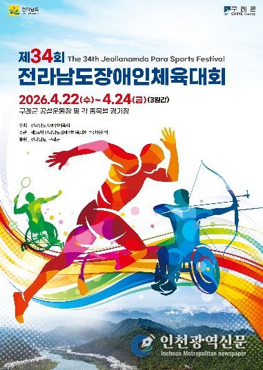 [인천광역신문] 최예준 기자 | 제34회 전라남도장애인체육대회가 22일 구례군 일원에서 개회식을 시작으로 오는 24일까지 3일간의 열전에 돌입한다.