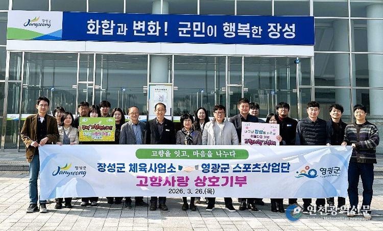 [인천광역신문] 최예준 기자 | 장성군 체육사업소와 영광군 스포츠산업단이 최근 장성 홍길동체육관에서 상호 고향사랑기부를 실천했다.