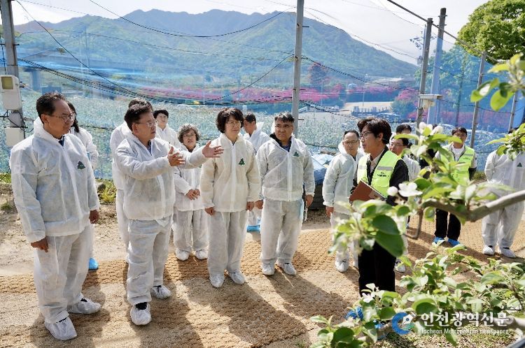 [인천광역신문] 최예준 기자 | 경상북도농업기술원은 22일 사과 주산지 영주시에서 과수화상병 확산 방지를 위해 중앙·도 합동 개화기 약제 방제 추진 상황을 점검했다.