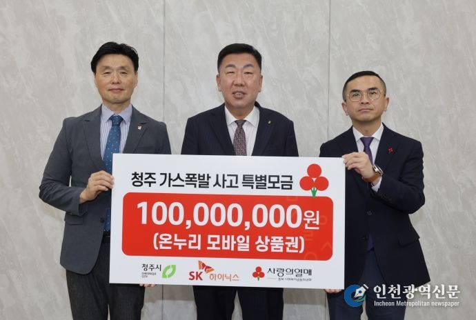 [인천광역신문] 최예준 기자 | 청주시는 SK하이닉스㈜(대표 곽노정)가 22일 청주 가스폭발 사고 피해지원을 위해 충북사회복지공동모금회를 통해 1억원(디지털 온누리상품권)을 기탁했다고 밝혔다.