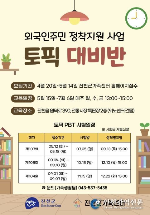 [인천광역신문] 최예준 기자 | 충북 진천군가족센터는 진천군의 지원을 받아 외국인 주민의 안정적인 지역사회 정착과 한국어 능력 향상을 지원하기 위해 ‘외국인주민 정착지원 사업’의 일환으로 ‘한국어교실 한국어능력시험 대비반’을 운영한다고 밝혔다.