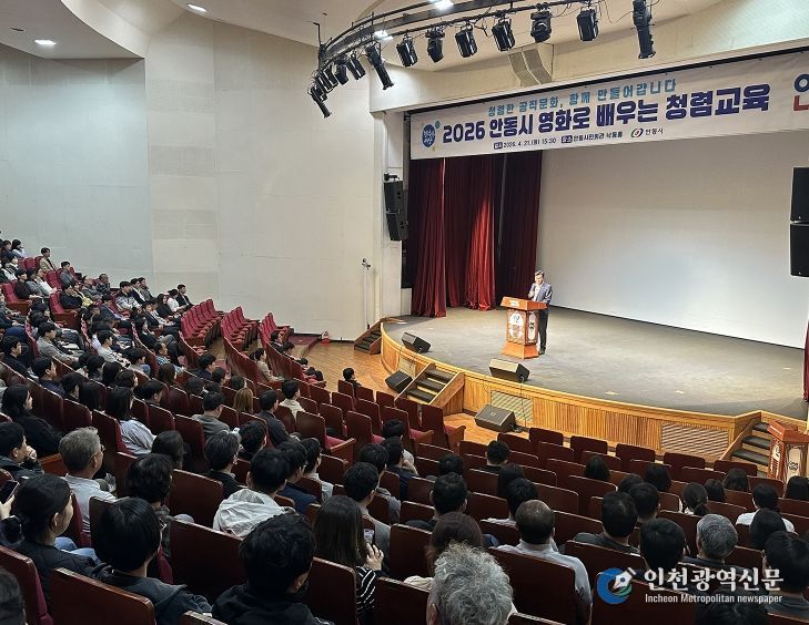 [인천광역신문] 최예준 기자 | 안동시는 4월 21일 안동시민회관 낙동홀에서 시 소속 공무원 및 공직유관단체 직원 380여 명이 참석한 가운데 ‘2026년 영화로 배우는 청렴교육’을 실시했다.