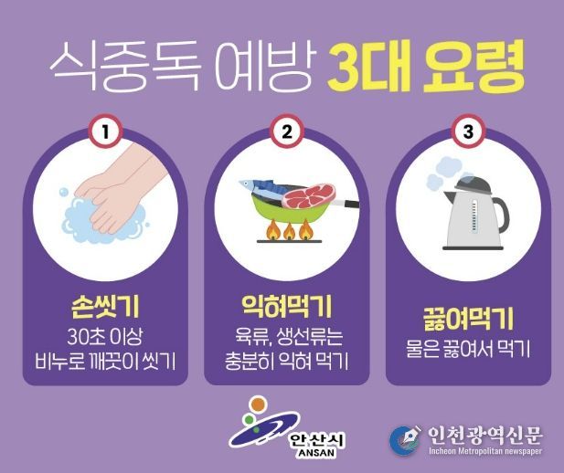 이민근 안산시장은 “식중독은 기본적인 위생수칙 준수만으로도 충분히 예방할 수 있다”며 “손 씻기, 익혀 먹기, 끓여 먹기 등 개인위생 수칙을 생활화해 주시길 바란다”고 말했다.