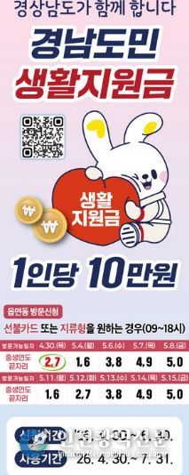 [인천광역신문] 최예준 기자 | 진주시가 고유가·고환율·고금리 3고(高)의 복합위기로 경제적 어려움을 겪고 있는 시민들을 위해 오는 30일부터 ‘경남도민 생활지원금’을 지급한다.
