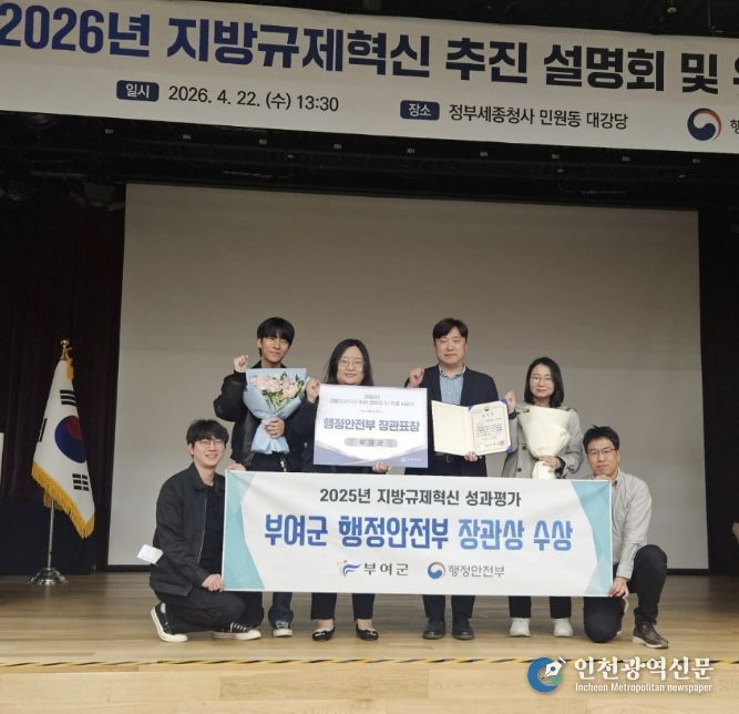 [인천광역신문] 최예준 기자 | 충남 부여군은 행정안전부 주관‘2025 지방자치단체 규제혁신 추진 성과평가’에서 행정안전부 장관 표창을 받았다고 23일 밝혔다.