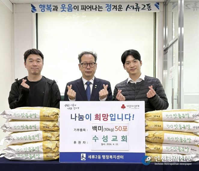 [인천광역신문] 최예준 기자 | 지난 22일, 수원시 권선구 세류동에 소재한 수성교회는 백미 500kg을 세류2동 행정복지센터에 전달했다.