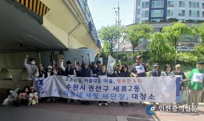 [인천광역신문] 최예준 기자 | 수원시 권선구 세류2동은 지난 19일 이주민이 참여하는 깨끗한 세류2동을 만들기 위해 수원이주민센터와 함께하는 ‘우리 동네 새빛 새 단장’을 실시했다.