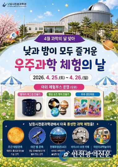 [인천광역신문] 최예준 기자 | 남원시천문과학관이 4월 과학의 달을 맞아 오는 24일부터 25일까지 이틀간 관람객을 위한 ‘체험형 과학문화 행사’를 운영한다.
