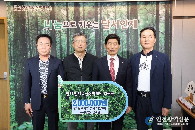 [인천광역신문] 최예준 기자 | 대구 달서구는 월배지구 근생 제2구역 도시개발사업조합(조합장 김희동)으로부터 지역 인재육성을 위한 장학금 200만 원을 (재)달서인재육성장학재단에 기탁받았다고 23일 밝혔다.