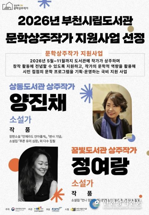 [인천광역신문] 최예준 기자 | 부천시립상동도서관과 꿈빛도서관은 문화체육관광부가 주관하고 한국문화예술위원회가 주최하는 ‘2026년 도서관 상주작가 지원사업’ 공모에 선정돼 5월부터 시민 대상 문학 프로그램을 운영한다.