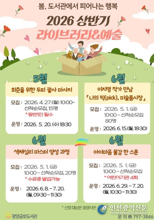 [인천광역신문] 최예준 기자 | 광양금호도서관은 가정의 달을 맞아 시민들이 독서와 문화를 함께 즐길 수 있는 다양한 프로그램을 운영한다.
