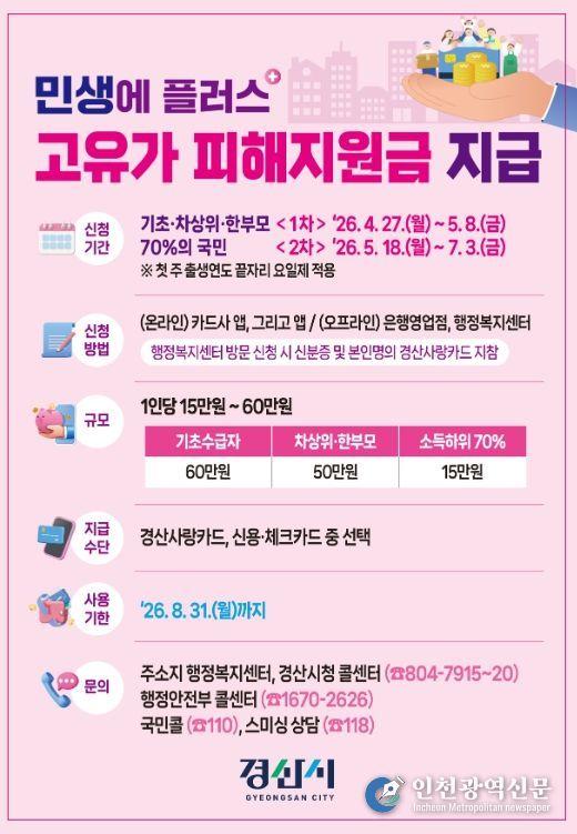 [인천광역신문] 최예준 기자 | 경산시는 27일부터 시작되는 '고유가 피해지원금' 1차 지급을 앞두고, 전담 T/F(Task Force) 구성과 읍·면·동 담당자 교육 등 신속한 지원금 지급 준비에 박차를 가하고 있다.