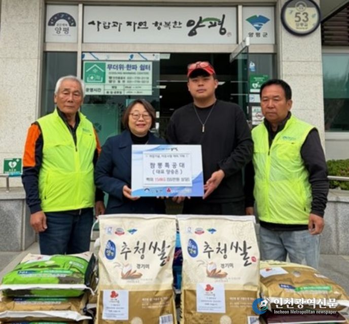 [인천광역신문] 최예준 기자 | 양평군 단월면은 지난 22일 부안1리에 새롭게 문을 연 중식 전문점 ‘짬뽕특공대’의 양승은 대표가 개업 축하 화환 대신 받은 백미 154kg(약 55만 원 상당)을 지역의 어려운 이웃을 위해 써 달라며 기탁했다고 밝혔다.