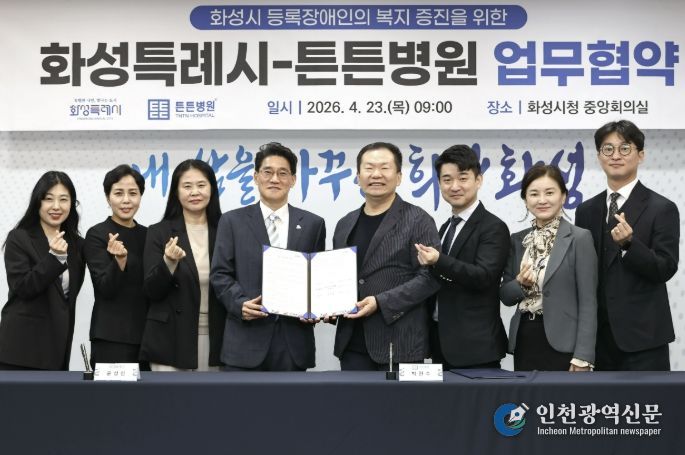 [인천광역신문] 최예준 기자 | 화성특례시는 23일 본관 2층 중앙회의실에서 튼튼병원과 화성시 등록장애인의 건강한 생활 지원과 삶의 질 향상을 위한 업무협약을 체결했다.